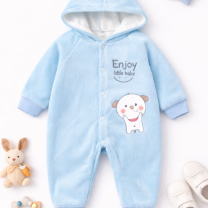 Newborn Baby Hooded Romper – Soft Cotton Blend Winter Wear (0–12 Months)